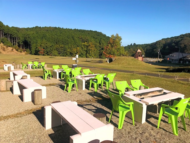 学習棟、炊事棟、水洗トイレ、温水シャワー、ランドリー、子供の遊具、多目的広場、BBQ場、パークゴルフ場