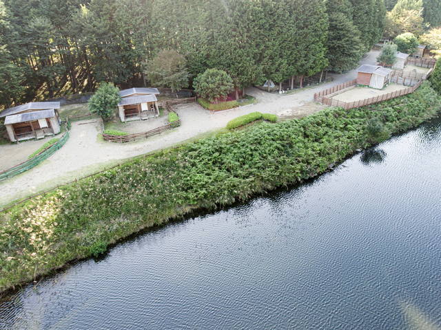 管理棟、炊事棟、水洗トイレ、温水シャワー、ランドリー、風呂、自動販売機、フリードッグランほか