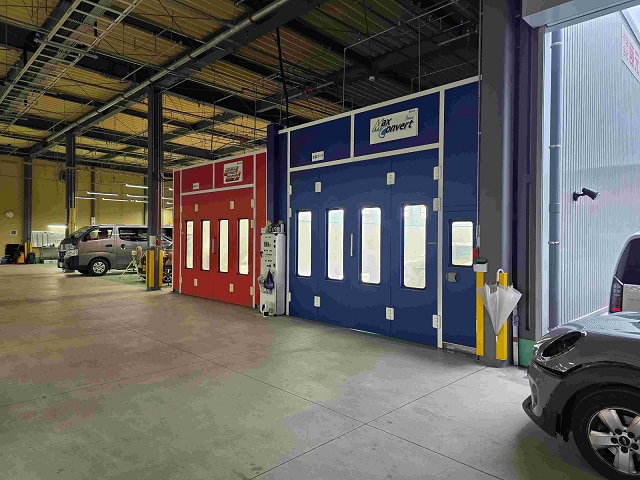 | 工場設備 | お客様駐車場 、待合室、EVステーション 、フレーム修正機、4輪アライメントテスター、塗装ブース、ボディー計測器、見積コンピューター、故障診断機、環境対応型塗料使用 |